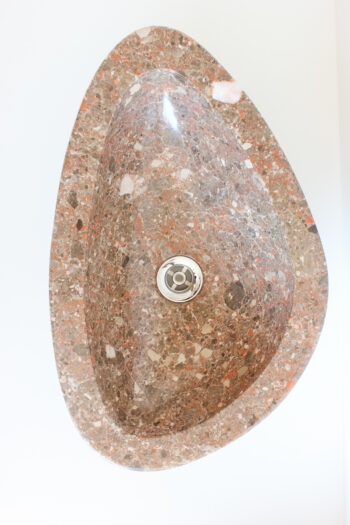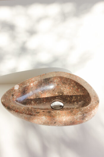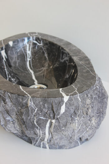 Zunanja stran umivalnika je oblikovana v robustno, naravno ovalno obliko. Notranja stran umivalnika pa je visoko polirana in zaščitena z impregnacijo proti nabiranju vodnega kamna. Tovrstna obdelava kamna ustvarja čudovit kontrast oblik med grobim zunanjim delom umivalnika in fino spoliranim notranjim delom.